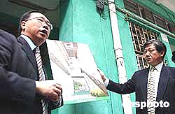 香港市區(qū)重建局18日宣布,準(zhǔn)備斥資1億元在灣仔茂蘿街展開“舊區(qū)活化”項目,協(xié)助推進文化創(chuàng)意產(chǎn)業(yè)發(fā)展。圖為官員向媒體展示重建后的藍(lán)圖。作者:譚達(dá)明