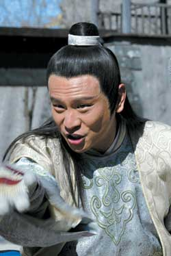 第一次出演清朝戲的張世,乍一看仿佛還是那個《粉紅女郎》中的色房東,不過張世自己卻不希望別人老記住他的一個角色,小眼睛一轉:“其實這次接拍清裝戲,也就是為了給觀眾一個更加新鮮的形象。”這部《縣令黃馬褂》依然是輕喜劇,張世在戲里依然會展示他那讓人忍俊不禁的搞笑技藝。