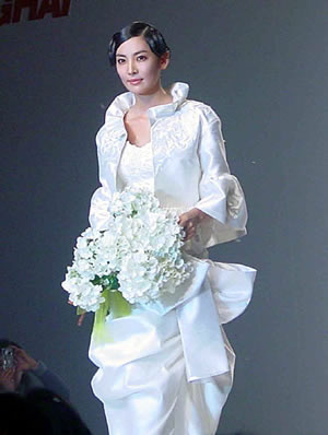 中新網(wǎng)3月24日電 據(jù)新聞晚報報道,昨天(23日)下午,在世貿(mào)商城的韓國時裝紡織博覽會上,韓國明星金素妍、鄭俊鎬身穿韓國頂級時裝大師AndreKim(安德烈·金)設(shè)計的最新服裝舉行了一場別開生面的婚紗秀,贏得了中國影迷的熱烈歡呼。下午三點,婚紗秀現(xiàn)場正式開放,爭相涌進的觀眾讓表演現(xiàn)場一時陷入癱瘓。主辦方不得不現(xiàn)場趕人,沒有邀請函的觀眾一律“清理”。當金素妍和鄭俊鎬雙雙出現(xiàn)在舞臺上時,歡呼聲伴隨著閃光燈爆發(fā)出來,出現(xiàn)了仿佛是搖滾樂演唱會的情景。特別是當鄭俊鎬輕吻金素妍前額時,一些女影迷當場流出了熱淚。