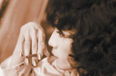幾乎與話劇《琥珀》上映的同時,劉燁的寫真集也應景上市,其中一張三分之一側面的照片在網上引起了軒然大波。照片上的劉燁戴著長長的假睫毛,鬈鬈的假發,指甲涂了蔻丹的手指夾著細煙,湊在光潤的唇邊,一個風塵味十足的嫵媚女人。如果不說,沒有人能看出那是雙料影帝劉燁。特別是那濃密睫毛的大眼睛,薄嘴唇倒很像歌壇天后王菲。