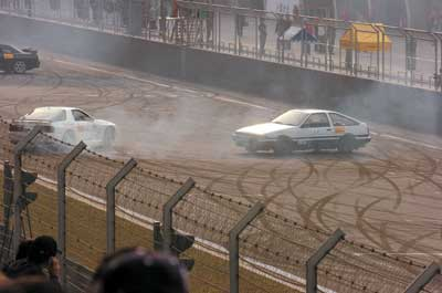 幾萬名觀眾觀看了《頭文字D》電影中的飄移比賽,在電影中使用的四輛賽車AE86、EVO、FC、GTR專門從香港運送過來,四輛賽車在跑道中呼嘯著做各種轉彎和飄移的動作,隨著一道道青煙的升起,全場立即沸騰起來。