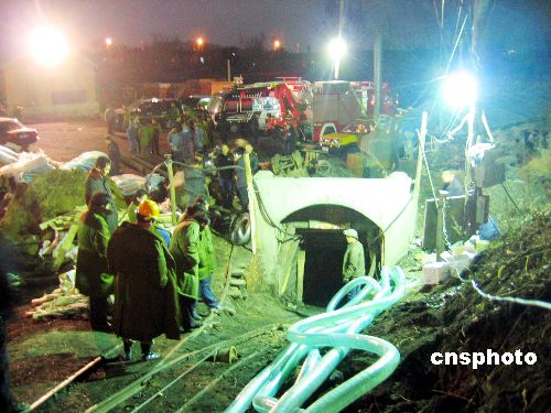 目前,事故現(xiàn)場成立了吉林省、吉林市、蛟河市三級搶險指揮部,搶救工作正分兩方面同時進行,一是堵塞吉安煤礦透水點,同時組織騰達煤礦緊急抽水,營救被困礦工。