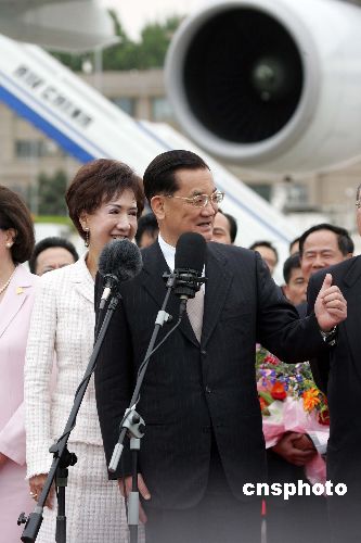 但是除了這個以外,各位也都知道,本人及代表團應邀將和胡總書記及各位領導就兩岸重要的、和平及經貿文化的交流這些議題,來做意見的交換。我們今天大家都非常關心兩岸的關系,怎么樣能夠在和解、對話過程中能建立一個和平的、雙贏的一個未來,這是我相信兩岸人民共同的一個心聲,也是我們大家要負起的歷史的一個責任,同樣的也是阻擋不住一個民意的趨向。所以今天國民黨訪問團要追隨大家能夠在這樣一個大環境下,讓我們共同放眼當前,讓我們重視當前,讓我們能夠有機會同樣地展望未來、開創未來。