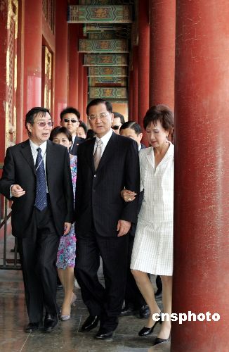 連戰(zhàn)訪(fǎng)團(tuán)隨即穿太和門(mén),踏漢白玉塔基拾級(jí)登臨故宮內(nèi)最雄麗的太和殿,有記者詢(xún)問(wèn):“連戰(zhàn)主席,能不能談?wù)勀鷮?duì)故宮的看法?”連戰(zhàn)連嘆“很好、很好”,其夫人連方瑀也不住的頷首示意。