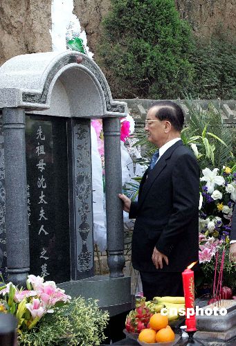 一日上午九時(shí)三十分許,陽光普照草木青蔥的墓園,連戰(zhàn)先生凝視祖母墳塋,深深三叩首;這三叩首,聊以慰藉他六十余年來對(duì)獨(dú)處西安的祖母的思念、掛懷。