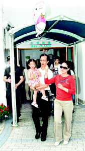 中新網5月8日電 據重慶時報報道,前日跳水王后伏明霞與老公梁錦松及愛女梁司渝,一家三口在香港海洋公園為中央電視臺拍攝一個宣傳香港的特輯。