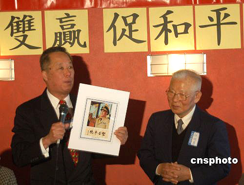 當地時間五月七日,華盛頓“榮光會”會長李昌緒(左)向臺灣“新同盟會”會長許歷農(右)贈送照片。許歷農曾經擔任國民黨軍隊高級將領,幾年前因不滿李登輝而退出國民黨的許歷農最近又回到國民黨。作者:余東暉