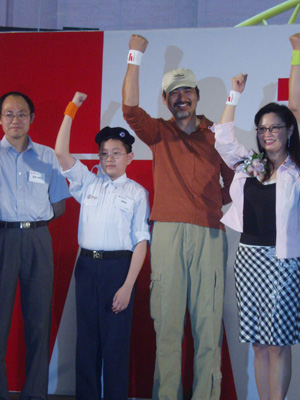 中新網(wǎng)5月9日電 據(jù)香港《大公報(bào)》報(bào)道,香港紅十字會(huì)昨日趁母親佳節(jié),舉辦“人道人人道”活動(dòng),希望喚起大眾對(duì)人道精神的關(guān)注,積極體現(xiàn)尊重生命。大會(huì)特別邀請(qǐng)了今次活動(dòng)的宣傳大使周潤(rùn)發(fā)出席,其它嘉賓尚有地中海貧血癥患者楊康鈿及零四年香港最高體育精神運(yùn)動(dòng)員蘇樺偉等。“發(fā)哥”昨日亦聯(lián)同其它嘉賓為“人道墻”揭開(kāi)序幕,又齊戴上“人道彩色手環(huán)”。