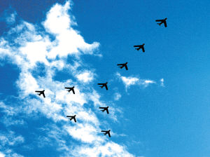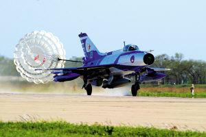 面對筆者的提問,李隊長說,由于飛機在一些方面的改進,要使新機達到當前6機編隊水平,飛行員需要進行一段時間的恢復性訓練。至于表演科目,他表示,因為使用的是超音速飛機,在表演動作上就要受一些限制。比如速度快轉彎半徑就大,在天氣好的情況下,觀眾能看到精彩表演,天氣不好視覺效果就差。另外還有一些動作雖屬高難,但觀賞性不強。對這些他們將在原有基礎上加以改進、有所創新。具體有哪些飛行動作“新鮮出爐”,李隊長避而不答。他只表示,觀眾以后將會看到更精彩的表演。