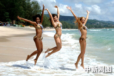 5月19日,2005環球小姐參賽佳麗在泰國普吉島泳裝亮相。