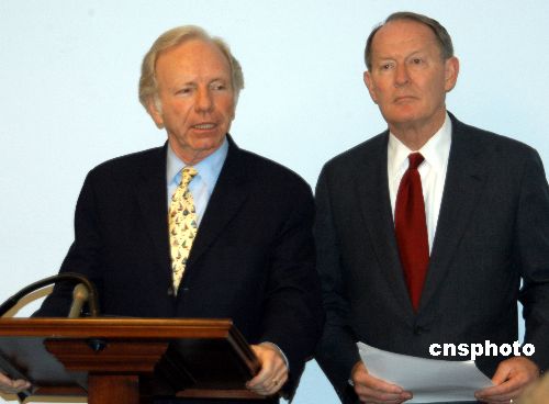 | 曾在去年競選總統(tǒng)的美國參議員利伯曼(左)與另一名參議員亞歷山大(右),25日聯(lián)合提出旨在促進(jìn)美中交流的“美中文化接觸法案”議案。他呼吁在國際事務(wù)中視中國為盟友,在商業(yè)活動(dòng)中待中國為伙伴,加強(qiáng)與中國的接觸和交流,美國才會(huì)擁有燦爛的未來。作者:余東暉