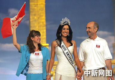 5月31日,環(huán)球小姐總決賽在曼谷舉行。加拿大小姐Natalie Glebova獲得冠軍。圖為加拿大小姐與家人分享快樂。