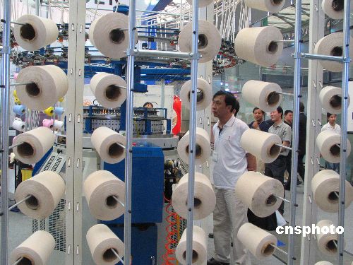 | 6月4日,國務(wù)院副總理吳儀在北京會見了來訪的美國商務(wù)部長古鐵雷斯,就共同關(guān)心的中美經(jīng)貿(mào)關(guān)系問題坦誠、深入地交換了意見。吳儀說,紡織品問題是中美經(jīng)貿(mào)關(guān)系發(fā)展中面臨的一個重大問題,如處理不好,將嚴(yán)重影響雙邊經(jīng)貿(mào)合作進程,中方對此表示高度關(guān)注。圖為中國某紡織企業(yè)生產(chǎn)車間。作者:吳芒子