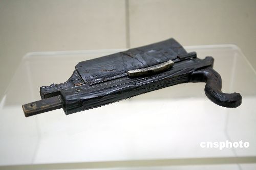 圖為湖北荊州博物館內最古老的“手槍”--弩機