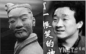 這些兵馬俑當中,有的臉型狹長,凝神沉思,很像是陜西籍演員馬躍;有的濃眉大眼,粗獷豪放,簡直就是電視劇《水滸傳》中“黑旋風”李逵的扮演者趙小銳的“翻版”;而有的則小眉小眼,活像演員劉亞津;有的則神清氣朗,英氣逼人,眉宇之間神似演員陳道明(見配圖)。