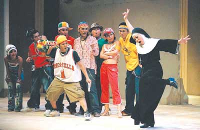 很多人都對黑人女星烏比·戈德堡主演的喜劇電影《修女也瘋狂》記憶猶新,《跑路救天使》即改編自此片。該劇在2004年由臺灣果陀劇場推出,當時曾創下連演31場場場爆滿的記錄,很多場次中謝幕時間竟長達30分鐘。而果陀劇場也是臺灣戲劇界的重要組成部分,它一直致力于“中文歌舞劇”的演出,獲得過多項表演大獎,被業內人士稱為“東方百老匯”。有意思的是該劇中還使用了很多觀眾耳熟能詳的流行歌曲,像《讀你》、王菲的《我愿意》、張惠妹的《姐妹》、劉文正的《誰在眨眼睛》等等,而且風格與我們熟悉的曲調有了很大改變,像《讀你》就被唱出了“圣歌”的味道。