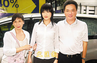 應(yīng)采兒與父母出庭應(yīng)訊后讓記者拍照。