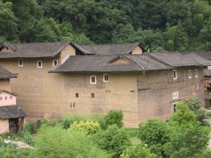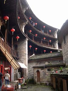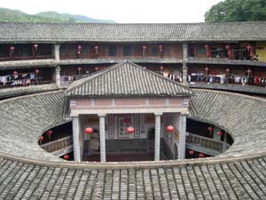 永定縣境內(nèi)的大型方型、圓型土樓有8000余座,最壯麗堂皇的、最有代表性的是洪坑村振成樓。這一“土樓王子”按八卦觀念結(jié)構(gòu)建造,卦與卦之間設(shè)防火墻,坐北朝南,調(diào)節(jié)陰陽(yáng)。每卦與內(nèi)層一樓采用北方四合院格式。全樓的設(shè)施布局既有蘇州園林的印跡,也有古希臘建筑的特點(diǎn)。堪稱中西合璧的建筑奇葩。1995年它的建筑模型與北京天壇作為中國(guó)南北圓形建筑代表參加了美國(guó)落杉磯世界建筑展覽會(huì),引起了轟動(dòng),一直被稱為“世界上獨(dú)一無(wú)二的神話般的山區(qū)土樓建筑”。