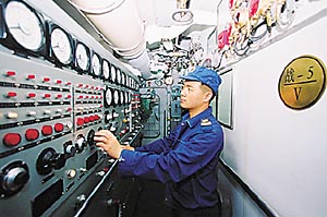“戰(zhàn)斗警報!”指揮員一聲令下,警鈴驟起,處于水面航行狀態(tài)的潛艇迅速潛進海里,對抗訓(xùn)練隨即開始。潛艇在海中時而懸停,時而變速航行,而時變向疾馳……經(jīng)過激烈對抗后,聲納屏上顯示的波峰,隨著一枚枚導(dǎo)彈和魚雷的攻擊,很快就找不到目標(biāo),潛艇大獲全勝。