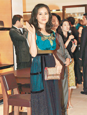 韓國首爾的LV專門店昨日正式舉行開幕,大會特別邀得“LV之友”兼近期港人風頭強勁的李英愛出席,吸引了過百傳媒前來采訪。穿上墨綠色及黑色連身長裙的愛姐,在十名保安護航下出場,更親切地與在場人士微笑揮手,并與品牌亞太區總裁Francois Delage及韓國行政總裁Hyun Ouk Cho合照留念。
