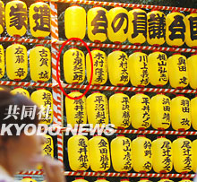 中新網7月15日電 據日本共同社報道,日本首相小泉純一郎為從13日開始的靖國神社主辦的廟會供奉了1萬日元的燈籠費,寫有小泉名字的燈籠懸掛在廟會上。