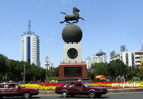 隨著新疆旅游旺季的到來,烏魯木齊在街道上增添了各種特色雕塑喜迎八方客。作者:馬蕙萍