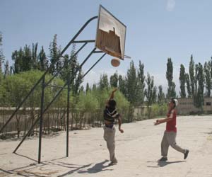 圖:英吉沙縣兩少年在打籃球