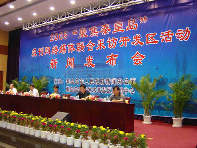 中新網秦皇島8月2日電 由中新網、人民網、中廣網等媒體參加的2005“聚焦秦皇島”報刊網絡媒體聯合采訪開發區活動新聞發布會,今日上午,在秦皇島開發區管委會報告廳召開。報刊網絡媒體秦皇島開發區行正式啟動。