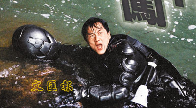 此外,電影公司更斥資近百萬,租借了一部最新型號的直升機作為拍攝道具及支援用途,而該部直升機是專程從美國軍事基地租借回來。至于成龍?zhí)俨紩r所穿的灰黑色盔甲,乃出自服裝設(shè)計師莊志良手筆,價值一萬美元,為了令盔甲表現(xiàn)到成龍的最合適身形,需先度出成龍每處身材的確實尺寸,再以近乎倒模方法,套上金屬材料逐寸拷打出來。而盔甲手臂部分所用富彈性防水物料,是向美國訂制,可制造最大浮力讓成龍浮在水面,以減低意外發(fā)生的機會。