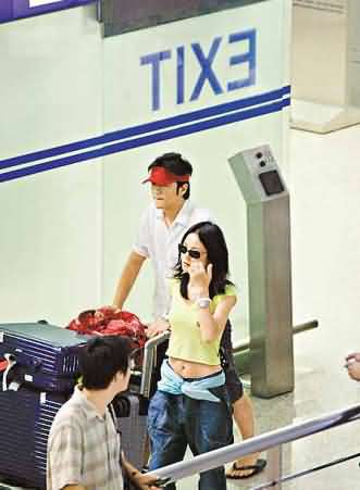在普吉逗留八日后,王菲和李亞鵬起程返回內地,昨日香港時間凌晨三時,兩人乘坐酒店的平治房車前往普吉機場,李亞鵬戴上紅色的太陽帽,王菲則穿了緊身黃色T恤露出平坦小腹,同樣是拖鞋,還綁了條絲巾在腰間充當腰帶。李亞鵬到達普吉機場落車時東張西望,和司機一起搬幾篋行李下車后,王菲才施施然下車,初時回避鏡頭,但見有幾個記者后,索性大方任拍。
