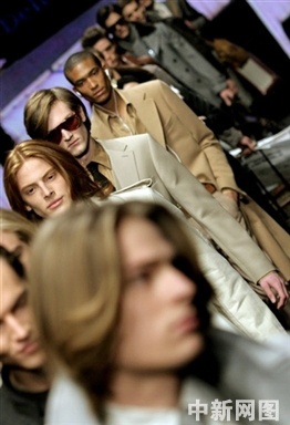 2006年1月18日,2006/2007秋冬男裝發(fā)布在米蘭舉行。圖為模特展示華倫天奴最新款秋冬裝。