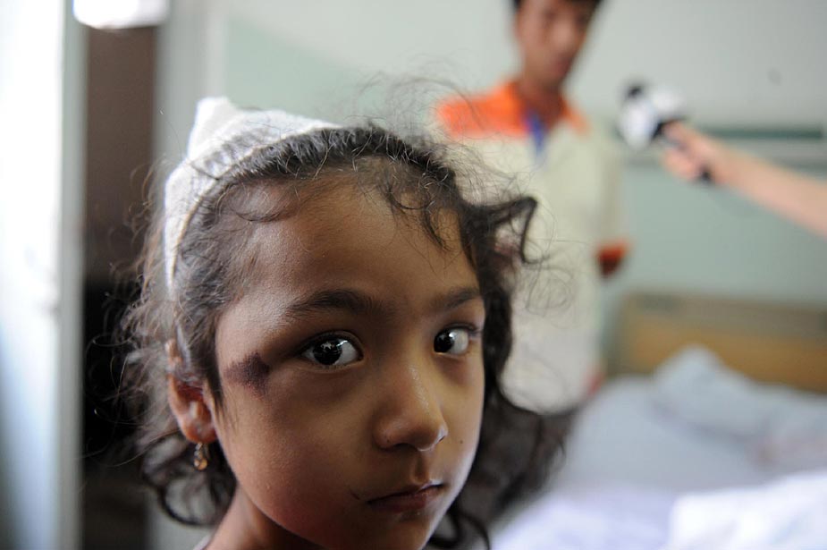 7月6日,一位名叫迪麗娜·瑪麗的少女在烏魯木齊友誼醫院接受治療,在5日晚發生的嚴重暴力犯罪事件中,她被暴力犯罪分子打傷。該事件已造成140人死亡,800多人受傷。中新社發 廖攀 攝