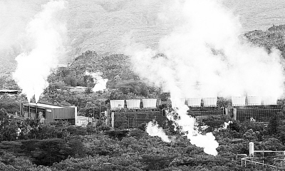 圖為肯尼亞裂谷省的歐卡瑞地熱電廠。該地熱電廠二期擴建工程目前已經完成了70%的地熱井鉆探工作,新的地熱井預計將在兩年內產生280兆瓦的電能?夏醽啅1981年開始開發地熱資源以來,共鉆探了33口地熱井。由于地熱資源不受氣候因素影響,發電價格不受國際原油價格波動的干擾,地熱發電是肯尼亞目前最便宜的發電方式?夏醽喌責岚l電資源非常豐富,共有7000兆瓦的地熱發電潛力。