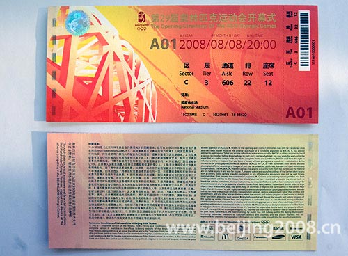 奧運(yùn)開幕式門票以"鳥巢"和祥云為主視覺元素(圖)