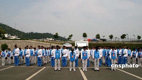 5月19日14時28分,北京奧運會火炬接力運行團(tuán)隊的所有成員,為四川汶川大地震遇難者默哀三分鐘,火炬運行車隊鳴笛致哀。 中新社發(fā) 周兆軍 攝