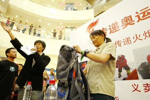 中新網6月9日電 6月7日下午,吉吉、李富慶、次洛等珠峰火炬手和中國登山隊形象大使譚維維現身成都,在王府井百貨商場的“傳遞奧運精神,共建愛心家園”的愛心義賣會上,他們紛紛拿出了圣火登頂珠峰時的心愛之物義賣,并現場愛心簽售了圣火登頂主題歌《無法阻擋》的限量單曲碟,為成都傳媒集團和成都餐飲同業公會發起組織的災區“愛心食堂”添柴加火。