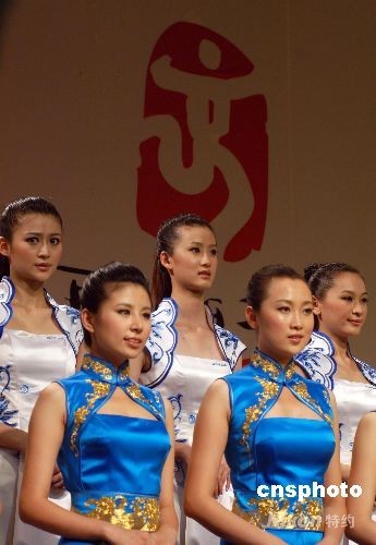 7月17日晚,北京奧運會頒獎禮儀服裝在北京正式發布。 中新社發 王東明 攝