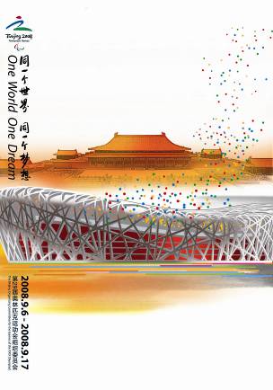 北京奧組委今天(18日)正式對外公布了北京2008年奧運會、殘奧會官方海報和官方圖片。圖為主題海報《文明北京 和諧奧運》。主題海報用象征的手法,由代表北京奧運的體育場館和經(jīng)典的北京建筑組成,中國水墨意蘊其間,氣韻生動。體育與文化,奧運與中國和諧輝映。該方案三幅合一成為組畫。