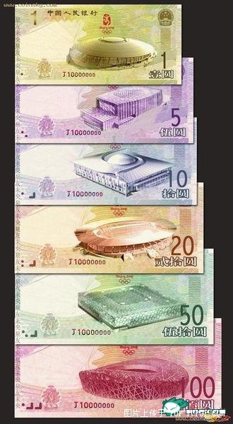 網(wǎng)絡(luò)上流傳的成套“奧運紀念鈔”圖片