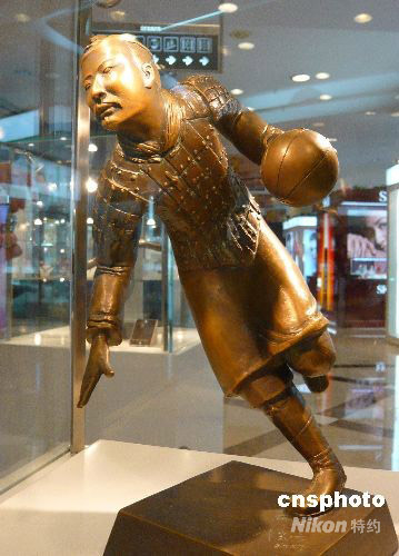 籃球造型兵馬俑雕塑。中新社發 樊甲山 攝