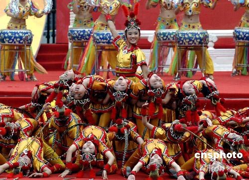 圖:精彩文藝表演助陣北京奧運(yùn)火炬?zhèn)鬟f