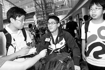 7月31日,美國男子體操隊隊長、華裔體操運動員譚凱文抵達北京首都國際機場,立刻引起守候的眾多媒體關注。譚凱文對奧運體操項目中的吊環和鞍馬頗有信心。劉新攝