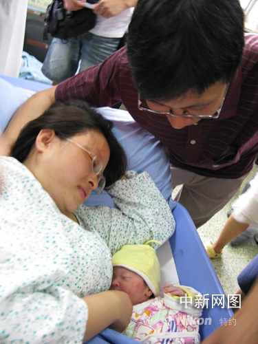 八月八日十二時五十九分,北京婦產專科醫院第十三個順產個奧運寶寶”——妮妮,在父母的期盼中順利誕生。據悉,單是該院從八日凌晨至下午十四時已有三十六名寶寶誕生,院方預計當日將有五十余名“奧運寶寶”出生,掀起該院生育小高峰。 中新社記者杜燕 攝