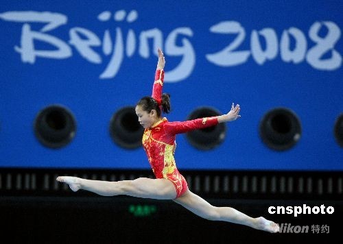 8月10日上午,北京奧運會女子體操團體資格賽在北京奧林匹克公園內的國家體育館舉行,由世界冠軍程菲領銜的中國隊由平衡木比賽開始向團體冠軍沖擊。中新社發(fā) 任晨鳴 攝