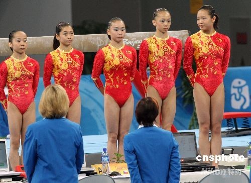 圖:中國女子體操隊開始向團體金牌沖擊