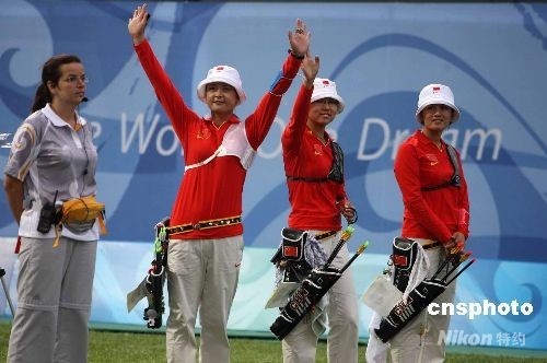 8月10日下午,由張娟娟、陳玲、郭丹組成的中國女子射箭隊在女子團體比賽半決賽中戰勝英國隊,將向多年來位居世界霸主地位的韓國隊發起挑戰。中新社發 任晨鳴 攝