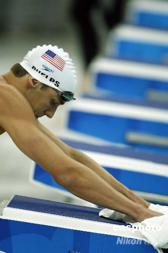 圖:菲爾普斯細(xì)心擦拭跳臺 200米自由泳輕松晉級