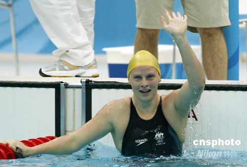 8月12日,澳大利亞選手萊塞爾·瓊斯在北京奧運會女子100米蛙泳決賽中,以1分05秒17的成績為澳大利亞隊獲得一枚金牌,并打破奧運會紀錄。 中新社發 杜洋 攝