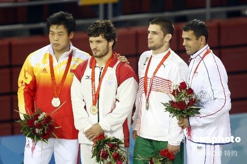 8月13日,在北京奧運會摔跤男子古典式74公斤級冠亞軍決賽中,格魯吉亞選手馬努恰爾·克維克利亞以2-0戰勝中國選手常永祥,獲得男子古典式74公斤級金牌,常永祥獲得銀牌。保加利亞選手亞沃爾·亞娜基耶夫與法國選手克里斯托夫·蓋諾并列獲銅牌。中國選手常永祥獲得這枚銀牌的同時,也創造了中國男子摔跤隊在奧運會比賽的最佳成績。在此之前,中國男子摔跤隊在奧運會上的最佳成績是第三名。中新社發 盛佳鵬 攝