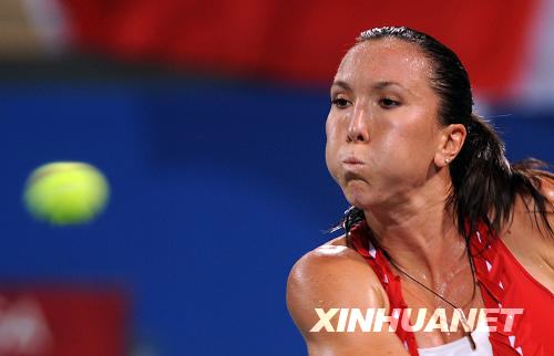8月13日,塞爾維亞網球選手揚科維奇在比賽中回球,像是在用嘴將球吹走。新華社記者鄒崢攝